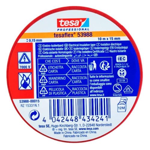 Páska elektroizolačná PVC 53988, IEC, 10 mx 15 mm, červená, TESA