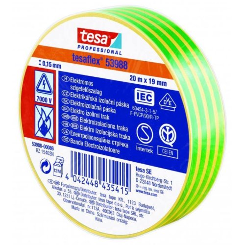 Páska elektroizolačná PVC 53988, IEC, 20 mx 19 mm, žltozelená, TESA