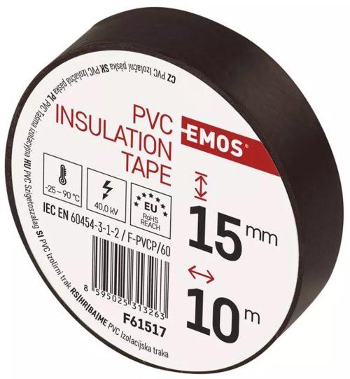 šírka: 15 mm dĺžka: 10 m hrúbka: 0,13 mm materiál: PVC farba: hnedá pevnosť v ťahu: 150 N/10 mm elektrická pevnosť minimálne: 40 kV/mm predĺženie minimálne: 125 % elektrická pevnosť po vlhku minimálne: 35 kV /mm skúška plameňom: priľnavosť k oceli minimálne: 1,8 N/10 mm priľnavosť k podkladu: 1,5 N/10 mm odporúčaná skladovacia teplota: 10–45 °C rozsah inštalačných teplôt: -25–90 °C spĺňa smernicu ROHS spĺňa smernicu REACH vyhovuje norme: STN EN 60454-3-1-2/F-PVC/60 odolné UV vodotesný spoj materiál lepidla: kaučuk predpokladané použitie: izolácia káblov