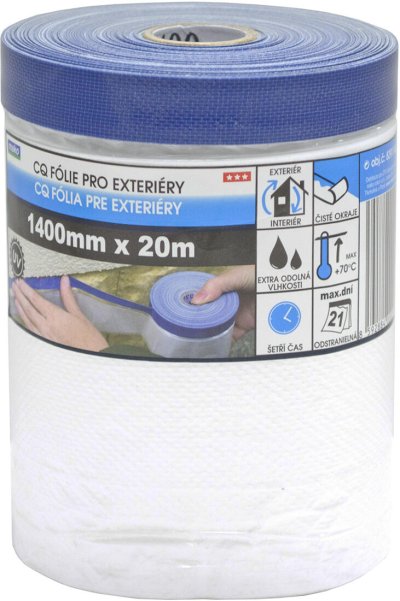 Páska krycia exteriérová 140 cm x 20 m, samolepiaca, so zakrývacou fóliou.
