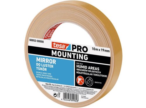 tesa PRO Mounting Mirror je výbornou voľbou pre profesionálnych remeselníkov, ktorým zákazníci zakazujú vŕtať do stien. Samolepiace páska ponúka spoľahlivú fixáciu aj vo vlhkom prostredí kúpeľne. Trvanlivá páska drží na hladkom povrchu (napr. na dlaždiciach) a dokáže pripevniť ploché objekty (napr. zrkadlá) s hrúbkou až 4 mm. S touto obojstrannou páskou splníte zákazníkom každé prianie.