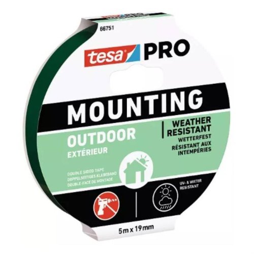 • Páska tesa PRO Mounting Outdoor urýchľuje a uľahčuje remeselníkom prácu vo vonkajšom prostredí. Vďaka spoľahlivej a účinnej lepiacej sile výborne drží na náročnom povrchu (dlaždice, tehly, kov, tvrdé plasty). Zákazníkom tak môžete ponúknuť trvalé a bezpečné upevnenie dôležitých objektov (listovej schránky, čísla na domoch) pomocou pásky odolnej proti UV žiareniu, vlhkosti aj teplotným extrémom.