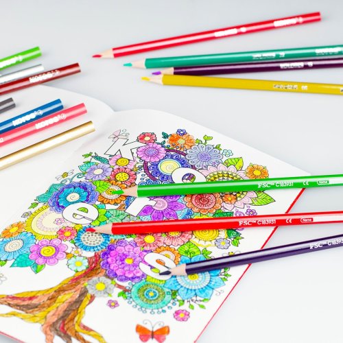 ideálne pre vyfarbovanie antistresových omaľovánok a mandál jemné a plynulé vedenie pastelky – intenzívne a jasné farby žiarivej farby vďaka vysokému obsahu pigmentu z vysoko kvalitného lipového dreva pre ľahké orezávanie extra mäkká tuha trojhranný ergonomický tvar rámček na vpísanie mena