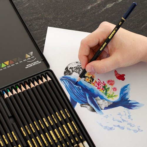 Prémiová kolekcia trojhranných pasteliek Kolores Selection V elegantnom kovovom puzdre, ktoré je navrhnuté tak, aby ochránilo pastelky Táto na mieru spracovaná sada je pre umelcov, dizajnérov a kreatívne …