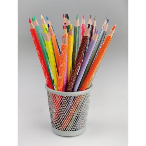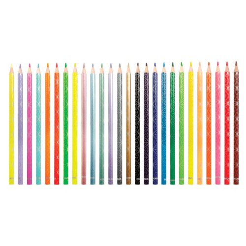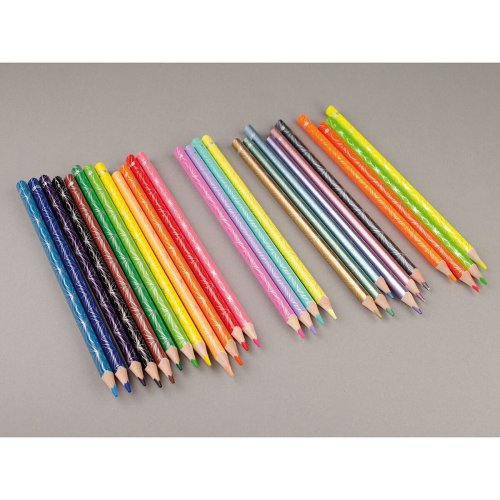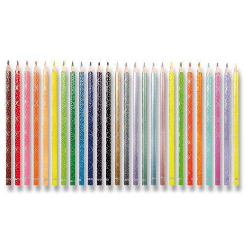 • strieborné dizajnové vzorovanie tela pastelky, * jemné a plynulé vedenie pastelky - intenzívne a jasné farby, * žiarivé farby vďaka vysokému obsahu pigmentu, * z vysoko kvalitného lipového dreva pre ľahké orezávanie, * nelámavá odolná a zároveň mäkká tuha, * trojhranný ergonomický tvar, * vhodné pre kresbu * štandardných farieb, * 6 ks trblietavých metalických farieb, * 4 ks neónových farieb, * 4 ks pastelových farieb