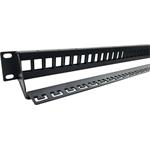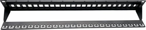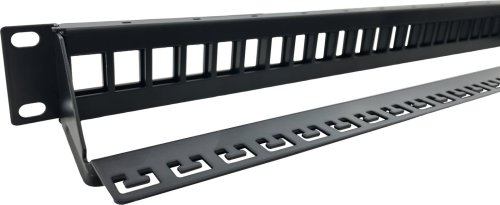 Vďaka čiernej farbe a výške 1U je panel kompaktný . Jeho celková hĺbka s lištou dosahuje hodnotu 90 mm, bez lišty iba 10 mm. Súčasťou balenia je navyše racková sada na prichytenie panelu do dátového rozvádzača.