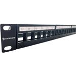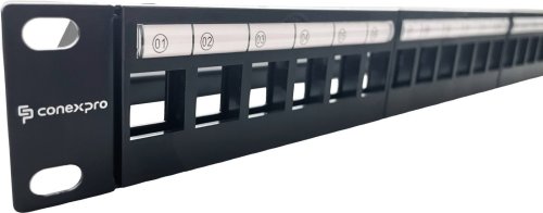 Modulárny patch panel Conexpro využijete s 19" dátovými rozvádzačmi s 24 portami pre plastové aj kovové keystony. Tie môžu spadať do rôznych kategórií - CAT5E, CAT6, CAT6A, CAT7 a CAT8. Panel je kovový a vybavený plastovým čelom.