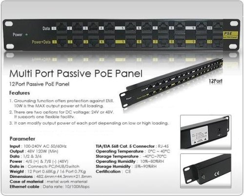 Patch panel POE do 19" racku integrujúci 12 gigabitových tienených aktívnych POE injektorov s napájacím rozsahom 24 - 57V.