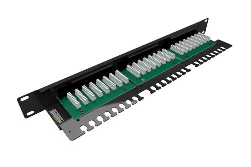 Panel je osadený celkom 24 portami RJ-45 a jeho súčasťou je lišta pre prehľadné vyviazanie a pevné uchytenie káblov priamo k telu panelu . Inštalačný kábel sa zakončuje do duálnej IDC svorkovnice typu 110/Krone s označením podľa štandardu T568A a T568B . Priamo na doske plošných spojov je tak farebné aj číselné označenie jednotlivých vodičov – nepárne číslo označuje polofarebný vodič a párne plne farebný. Vnútri balenia sa potom nachádzajú 4 montážne sady M6 a 24 vyväzovacích pások .