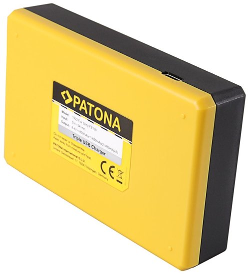S nabíjačkou Patona Triple je možné nabíjať súčasne až 3 batérie . Na LCD displeji sa zobrazuje aktuálny stav nabitia batérie. Napájanie nabíjačky je realizované cez štandardný USB port pomocou dodaného kábla USB typu C. Nabíjačky sú vyrábané podľa najvyšších európskych štandardov kvality a vyznačujú sa extrémne dlhou životnosťou.