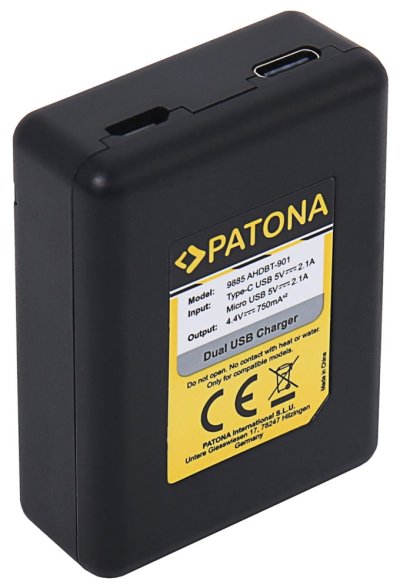 S nabíjačkou Patona DUAL je možné nabíjať 2 batérie AHDBT901 alebo ADBAT001 súčasne , a to z akéhokoľvek USB výstupu. Disponuje konektormi micro USB a USB typu C. Nabíjačky sú vyrábané podľa najvyšších európskych štandardov kvality a vyznačujú sa extrémne dlhou životnosťou.