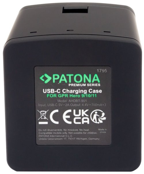 S touto uzatvárateľnou nabíjačkou PATONA Triple GoPro je možné nabíjať 3 batérie súčasne . Pre napájanie slúži konektor USB-C . Nabíjačky sú vyrábané podľa najvyšších európskych štandardov kvality a vyznačujú sa extrémne dlhou životnosťou.