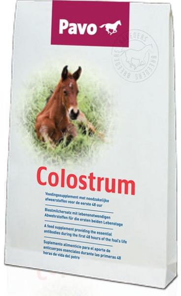 Mledzivo pre čerstvo narodené žriebätá. Novo narodené žriebätá nemajú vždy dostatok protilátok proti infekciám. Žriebä si tieto látky nevyprodukuje v dostatočnom množstve, keď je staré 3 až 5 týždňov. Aby lepšie zvládlo túto periódu, musia získať protilátky v mledzive. Pokiaľ žriebä nemôže prijímať dostatok mledziva alebo vôbec žiadne, je extrémne dôležité, dodať ho čo najskôr je to možné. Jednou z možností je podávať Pavo Colostrum v priebehu 12 hodín po narodení žriebäťa. Protilátky môžu preniknúť do tráviaceho traktu iba v prvý deň po narodení. Počas 12 hodín po narodení telo žriebäťa absorbuje protilátky veľmi dobre, po 24 hodinách už väčšinou nie. Dôležité vlastnosti: