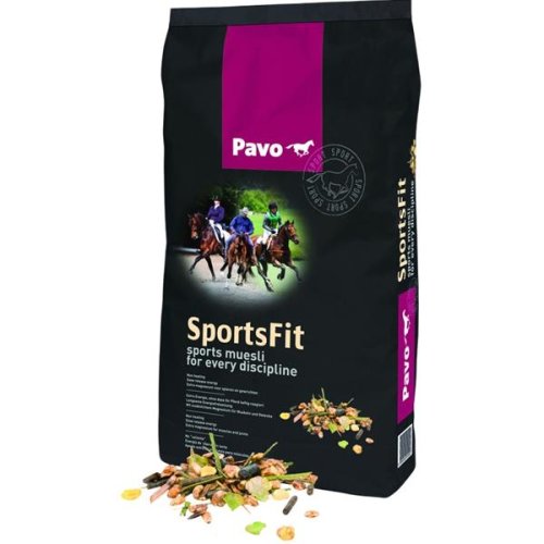 Horčík je dôležitým stavebným prvkom kostného tkaniva. Pokiaľ dôjde k jeho deficitu, naštartuje sa jeho odbúravanie z kostí. Pavo SportsFit obsahuje extra horčík na podporu kvalitných kĺbov a šliach. Je tiež ideálnym zdrojom energie pre závodné kone, pretože obsahuje škrob pre rýchlu energiu alebo extra „silu“, v kombinácii s olejom, čo je čistá energia, ktorá neprodukuje odpadové produkty, ako je mliečna kyselina. Váš kôň sa bude lesknúť a bude mať dostatočnú silu bez „horúcej hlavy“. Zloženie müsli bolo vyvinuté spoločným úsilím vedcov a jazdcov. Je to vybalansované energetické krmivo, ktoré môže byť kŕmené vášmu koňovi v maximálnej dávke 4 kg. Je to tiež úžasný doplnok na kombináciu s normálnym krmivom.