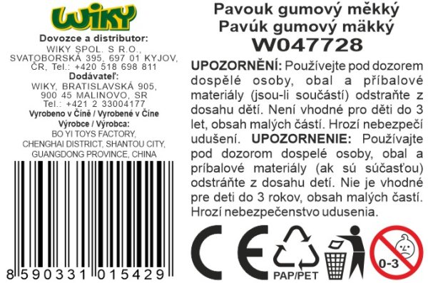 Pavúk gumový mäkký. Presné rozmery 11x16x4 cm.