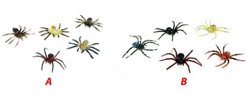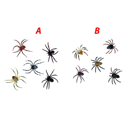 V sade nájdeš 5 kusov rôznych pestrofarebných pavúkov. Veľkosť cca 7 cm.