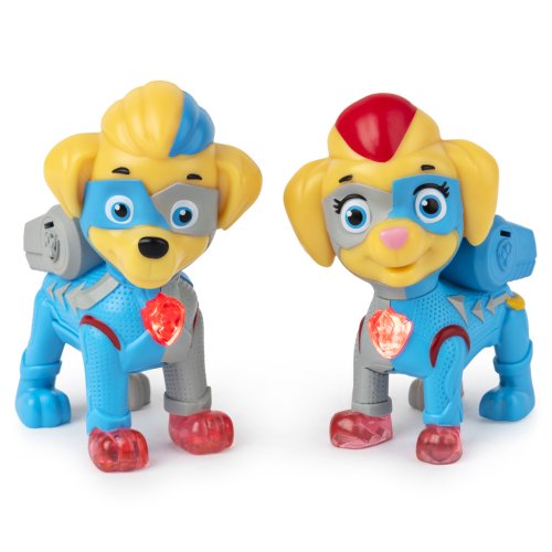 Krásna dvojčatá šteniatok z Tlapkové Patroly. Po stlačení batohu sa figúrka rozsvieti ako nikdy pred tým.