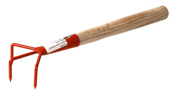 Pazúrik tříhrotý s násadou pre kyprenie pôdy na záhonoch a v skleníku. Pracovná časť je z kovu.