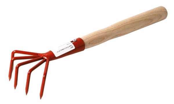 Pazúrik pětihrotý s násadou pre kyprenie pôdy na záhonoch a v skleníku. Pracovná časť je z kovu.