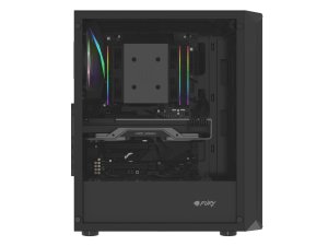 Futuristický geometrický tvar sa bude páčiť ako hardcore hráčom, tak aj tým, ktorí dávajú prednosť decentnejšiemu dizajnu. Ľavý bočný panel z tvrdeného skla je príležitosťou na odhalenie vnútrajška skrine a výkonných komponentov ukrytých vo vnútri - tiež s RGB, najmä preto, že inštalovaný ventilátor je predsvietený.