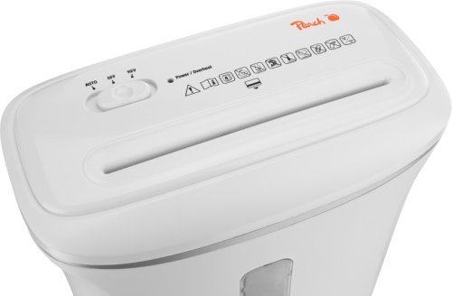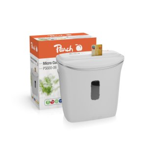 Peach Micro Cut Shredder PS600-06 Špecifikácia: P-5, 2x4 mm, 4 listy, 65 dB, 1,5 m/min, 12l kôš, 190 W, kreditná karta, 2 min zapnuté/40 min vypnuté, rozmery: 32,5 x 17 x 32 cm Moderný design