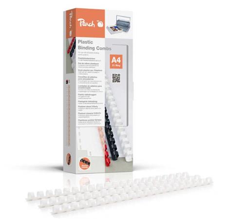 Viazací hrbet Peach 21 krúžkový, 10mm, 65 listu, A4, biely, 100ks