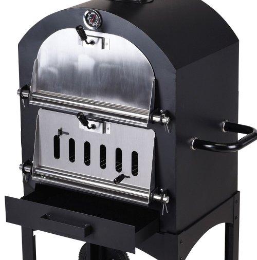 Multifunkčný záhradný gril so širokými možnosťami využitia sa ihneď stane pýchou Vašej záhrady alebo terasy. Na tomto grile/peci zvládnete všetky tieto spôsoby prípravy: klasické grilovanie na rošte, pečenie pizze alebo chleba na kamennej doske, údenie studeným aj teplým dymom, varenie aj ohrievanie. Šamotový pizza kameň na pečenie možno ľahko zameniť za klasický grilovací rošt, na ktorom môžete pripravovať mäsové špeciality aj ryby. Samostatne prístupné ohnisko má vlastné dvierka a umožní ľahké prikladanie. Dômyselne riešený systém klapiek má spoločne s komínom na svedomí reguláciu teploty, ktorú môžete ich nastavením priamo ovplyvniť a regulovať. Pec môžete vďaka veľkým pojazdovým kolesám a postranné rukoväte ľahko premiestňovať. Veľká odkladacia polica pod grilom je skvelý priestor na uloženie dreveného uhlia, náčinia alebo klátov dreva, čo zároveň skvele vyzerá. škála využitia - prispôsobené tiež k údeniu studeným i teplým dymom - použitie ako veľká grilovacia plocha alebo pizza kameň - vstavaný teplomer pre kontrolu vnútornej teploty - odťahový komín so strieškou a regulovateľná ventilácia - dve pojazdové kolieska a postranná rukoväť pre ľahkú manipuláciu - ľahko prístupná vyberateľná priehradka na popol Vám uľahčí čistenie pece- veľká odkladacia plocha pod grilom, aby bolo všetko potrebné vždy po rukeTECHNICKÉ PARAMETRE:- konštrukcia: oceľová- teplomer: áno- regulácia teploty: áno- otočné kolesá: áno, 2- úložný priestor: áno- obslúži počet osôb: až 12- rozmery grilovacieho roštu: 45 x 30 cm- výška grilovacieho roštu: nastaviteľná 54 až 76 cm- celkové rozmery: 50 x 38 x výška 150 cm- hmotnosť: 28 kg- zdroj: drevo, uhlie, brikety- značka: Vaggan Netherlands