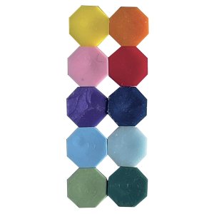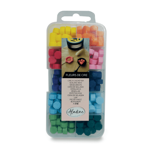 Vosk vo forme granúl na výrobu pečatí, ktorými ozdobíte svadobné oznámenia, pozvánky, chlopne obálok, darčeky aj kreatívne projekty. Používajú sa spoločne s pečatnou sadou. Do teflónovej lyžičky sa umiestnia 3–4 granule vosku, použiť je možné rôzne farby pre mramorovaný efekt. Lyžička sa nahreje na stojane nad plameňom čajovej sviečky. Po roztavení sa vosk z lyžičky naleje na požadované miesto a vtlačí sa doň kovové pečatidlo. Obsahuje 10 žiarivých farieb, rozmer balenia 13 x 6,5 x 2 cm.