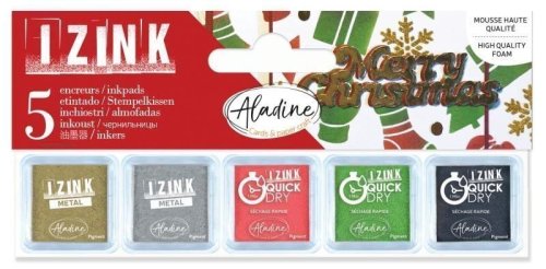 Pečiatkovacie atramentové vankúšiky k diárovým pečiatkám Aladine. Sada obsahuje 5 ks farebných rýchloschnúcich atramentových vankúšikov vo vianočných farbách. Metalické odtiene (zlatá, strieborná) schnú 30 minút.