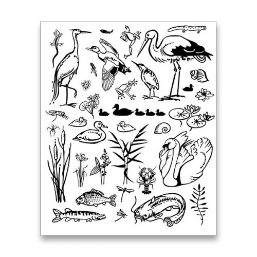 veľkosť motívov cca 7 a 4,5 cm., * precízna tlač vďaka hlbokým pečiatkovým štočkom, * vyprateľný, vodou umývateľný a zdravotne nezávadný atrament, * atrament sa na papieri nerozmazáva, * natlačený motív je možné ihneď vyfarbiť aj vodovými farbami, * pečiatku pečiatok a vankúšik s čiernym atramentom.