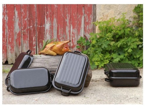 Obojstranne smaltovaný riad z oceľového plechu. Je určené na pečenie vo všetkých typoch rúr, okrem mikrovlných. Tento tradičný smaltovaný pekáč má vnútorný rozmer 30 cm.