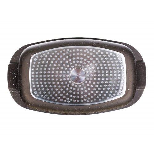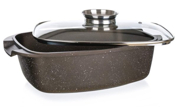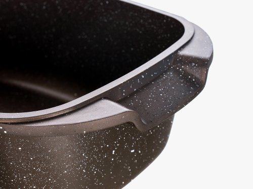 Pekáč 39,5 x 22 x 11 cm, nepriľn. povrch, PREMIUM Dark Brown, s arómou knobom. rozmery: 39,5 x 22 x 11 cm objem: 5,7 k hrúbka steny: 2,2 mm hrúbka dna: 4,7 mm hnedý granitový dekor plne indukčné dno …