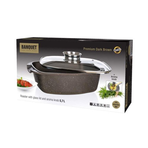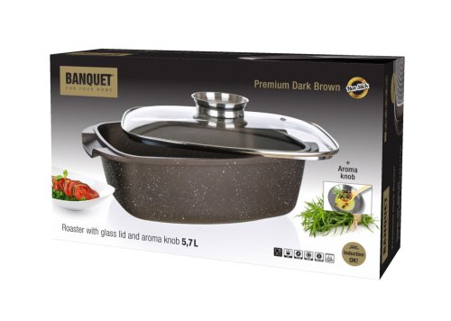 Hliníkový liaty pekáč PREMIUM DARK BROWN s nepriľnavým povrchom, so sklenenou termo pokrievkou a arómou knobom. Nepriľnavý povrch je veľmi tvrdý a odolný proti poškriabaniu. Hrniec je odolný proti nárazu a deformácii tvaru.