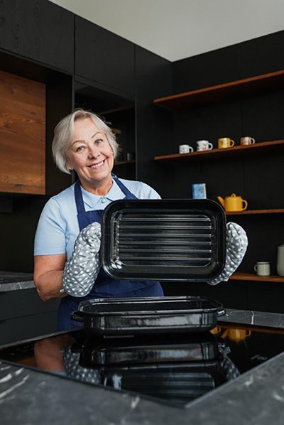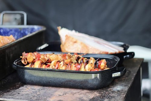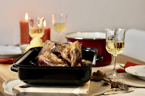 Smaltovaný pekáč so špeciálnym rastrovaným dnom, ktoré je veľkou výhodou pri pečení mäsa.