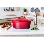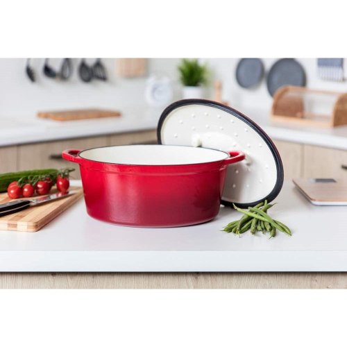 Pripravte si svoj obľúbený pokrm v oválnom liatinovom pekáči Banquet Excellent. Skladá sa z 2 dielov – pekáča a veka. Liatina totiž po nahriatí rovnomerne rozvádza teplo , takže sa hodí nielen na pečenie v rúre. Využijete ho tiež na varenie, dusenie a vyprážanie , a to na všetkých typoch sporákov . Vďaka masívnemu materiálu s vynikajúcimi vlastnosťami pripravíte obed či večeru za kratšiu dobu a úspornejšie.