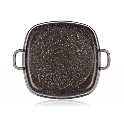 Pripravte si svoj obľúbený pokrm v štýlovom pekáči Banquet Premium Dark Brown s rozmermi 28 x 28 x 8 cm. Jeho povrch je nepriľnavý , preto sa vám k nemu len tak nepripaľujú potraviny a ľahko sa čistia. Pokojne ho umyjete v umývačke riadu. Indukčné dno sa hodí na všetky druhy sporákov - elektrický, plynový a sklokeramický sporák aj indukcia. Pek áč zdobí elegantný mramorový vzor .