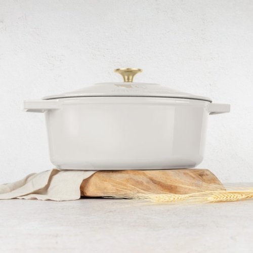 Tento vysoko kvalitný liatinový hrniec so smaltovaným povrchom kombinuje tradičný design a modernú funkčnosť. S objemom 4,65 litra a priemerom 30 cm je ideálny na varenie, pečenie a servírovanie. Hrniec sa skvele hodí ako do rúry, tak na sporák, a vďaka jeho liatinovej konštrukcii dlhodobo udržuje teplotu. Navyše vďaka krémovej farbe skvele doplní vašu kuchyňu. Je to univerzálny pomocník, ktorý vás nikdy nesklame.