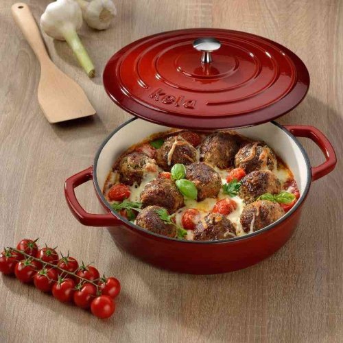 Pekáč liatinový s pokrievkou CALIDO 28 cm červená KL-11938
