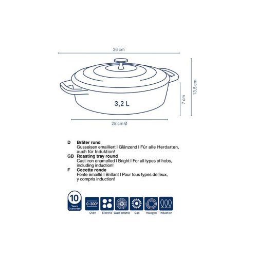 Pekáč liatinový s pokrievkou CALIDO 28 cm šedá KL-12611