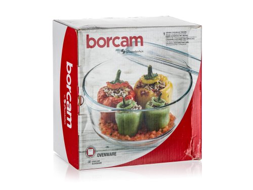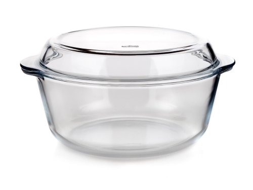 Sklenený okrúhly pekáč s vekom s objemom 4,1 l (nádoba 3,1 l + veko 1 l) je vyrobený z tvrdého boritokremičitého skla, ktoré je veľmi odolné (mechanicky aj teplotne -40 až 300 st.C) . ýhodou je dlhá životnosť, hygienická nezávadnosť a ľahká údržba (možno umývať v umývačke riadu).