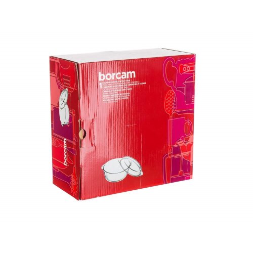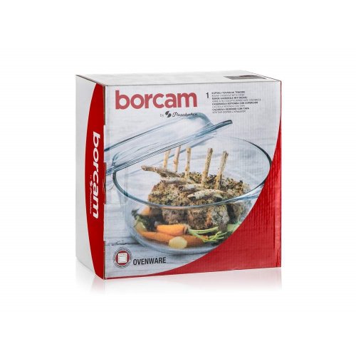 Sklenený okrúhly pekáč s vekom s objemom 3,1 l (nádoba 2,2 l + veko 0,9 l) je vyrobený z tvrdého boritokremičitého skla, ktoré je veľmi odolné (mechanicky aj teplotne -40 až 300 st.C) . Výhodou je dlhá životnosť, hygienická nezávadnosť a ľahká údržba (možno umývať v umývačke riadu).