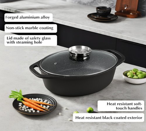 Jednou z najväčších výhod pekáča je, že vám ušetrí veľa času a energie . Nemusíte sa trápiť s varením na platni a dohliadaním na pokrm, ktorý sa pomaly varí. Stačí všetky suroviny vložiť do pekáča a potom s ním rovno do rúry. Kvalitný materiál, z ktorého je pekáč vyrobený – mramor zaistí, že teplota bude v pekáči rozvádzaná rovnomerne. Riad odolá vysokým teplotám a vďaka kvalitnému materiálu je tiež ľahko umývateľný .