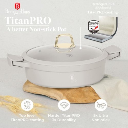 Objavte dokonalosť s plytkým hrncom Berlingerhaus BH-7785 s priemerom 34 cm. Tento elegantný a výkonný hrniec je navrhnutý tak, aby spĺňal všetky vaše kuchynské potreby. S jeho robustnou konštrukciou a titánovým povrchom zvládnete ľahko a rýchlo pripraviť akýkoľvek pokrm.