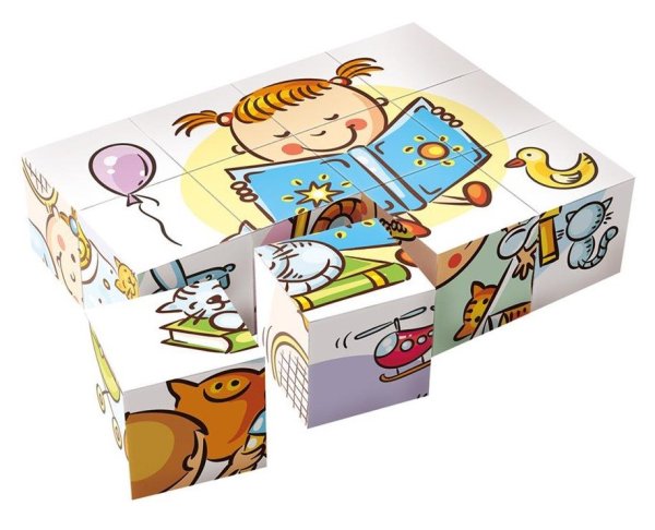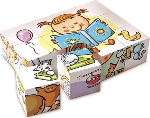 Drevené kocky s farebnými obrázkami sú výbornou voľbou pre najmenších. Pri ich správnom poskladaní sa zobrazí jeden zo šiestich obrázkov, hra tým napomáha rozvíjať u detí logické uvažovanie, fantáziu a jemnú motoriku. Pri stavaní a búraní komínov deti zistia, ako funguje rovnováha a pomôže im to v chápaní príčiny a následku. Rozmery balenia 17 x 12 x 4 cm. Vhodné pre deti od 3 rokov.