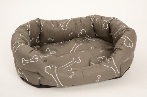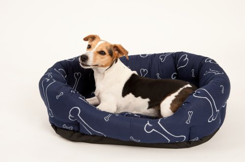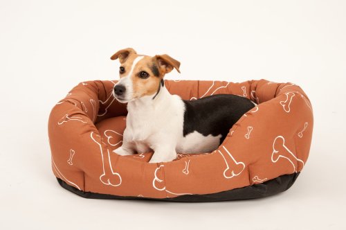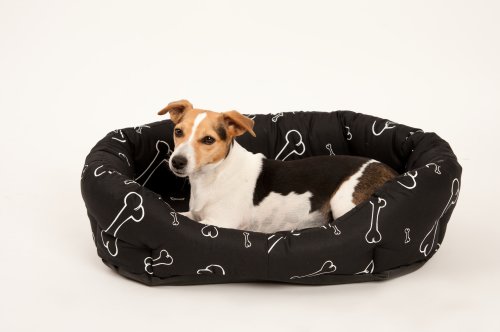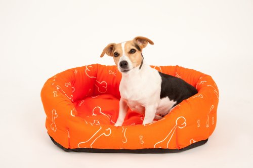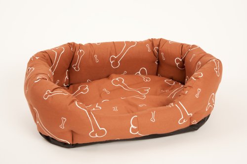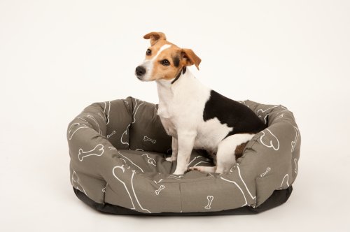 Pohodlný, kvalitný pelech vyrobený z bavlnenej látky potlačenej kosťami a kockami, vyplnený dutým vláknom. Pelech je v niekoľkých bodoch prešitý, aby nedošlo k nerovnomernému rozmiestneniu výplne. Vankúšik je vyberateľný. Boky pelechu sú kvôli dobrej opore bohato vyplnené. Pelech sa ľahko udržuje.