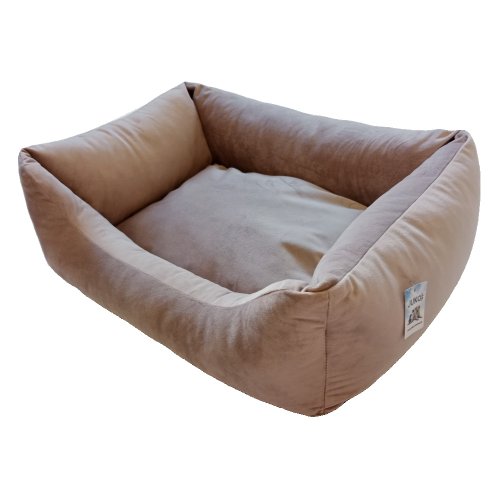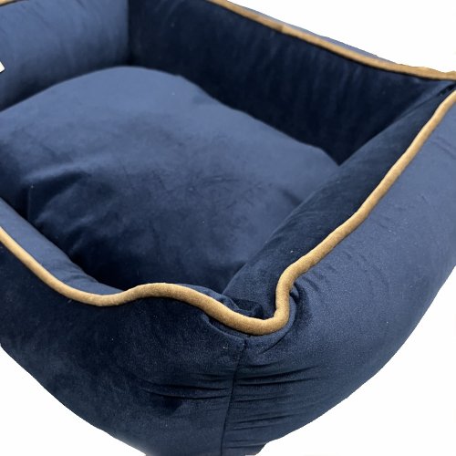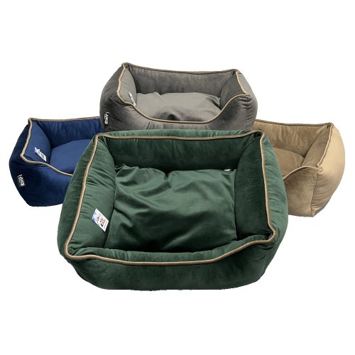 Luxusný zamatový pelech pre psov s polstrovaným okrajom.