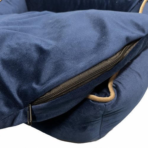 Vrchná látka pelechu aj vankúšika sa dajú pomocou zipsov zložiť a prať alebo čistiť samostatne.