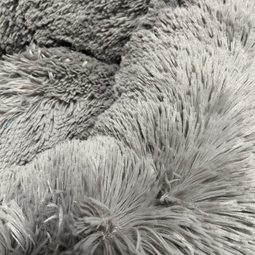 Materiál shaggy je veľmi príjemný na dotyk vďaka dlhému vlasu, má antistresovú vlastnosť, ktorá sa využíva u psov. Výplň pelechu je elastický antialergický silikón, ktorý sa vyznačuje zvýšenou životnosťou a odolnosťou proti deformácii, ohybu a roztrhnutiu.