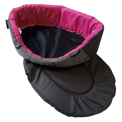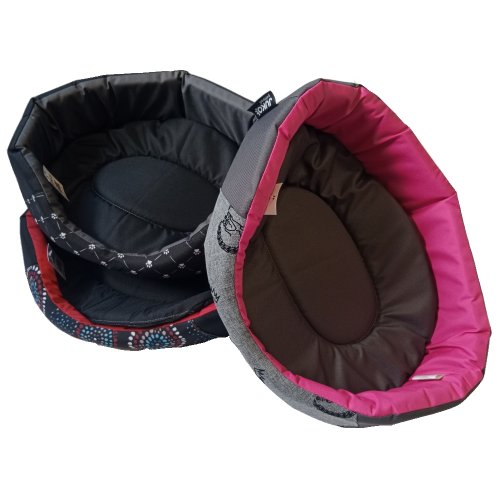 Látkový pelech pre psov v tvare oválu s vyberateľnou podložkou.