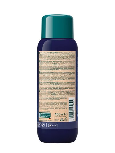 Pena do kúpeľa Kneipp® Good Night s výťažkami z amyrisu a švajčiarskej borovice spomalí tok vašich myšlienok a umožní vám naplno relaxovať. Oddýchnite si. Pena do kúpeľa Kneipp® Good Night obsahujúca esenciálne oleje zo švajčiarskej borovice a indického santalového dreva vám pomôže docieliť pokoj a pohodu po hektickom dni. Starostlivo zvolené rastlinné zložky napomáhajú k zníženiu krvného tlaku ak celkovému upokojeniu mysle. Prípravok sfarbí vodu do dymovo modrého odtieňa, zatiaľ čo hladinu zahalí do dlhotrvajúcej peny.